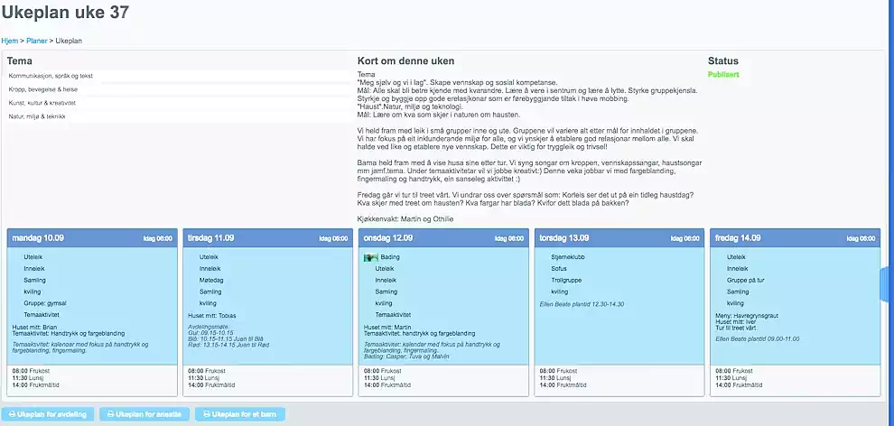 Kidplan er et digitalt verktøy for bruk i barnehagen, bruken er tilpassa digitale plattformer, som nettbrett/ iPad, datamaskiner og mobiltelefoner. Systemet er enkelt å bruke, og nyttast av både tilsette og foreldre med sikker pålogging. Kidplan er også ein plattform for dei tilsette som gjer planlegging og dokumentasjon av barnehagekvardagen enklare. Her lagast det vekeplanar og det planleggast spennande aktivitetar. På enkelt vis er det mulig å dokumentere med ord og bilete, samt lage spennande rapporter.. Ved å bruke Kidplan sparer pedagogane dyrebar tid i det daglege og får frigitt tid til å være meir saman med barna, samt vi sikrar ein lik dokumentasjonspraksis i barnehagen.